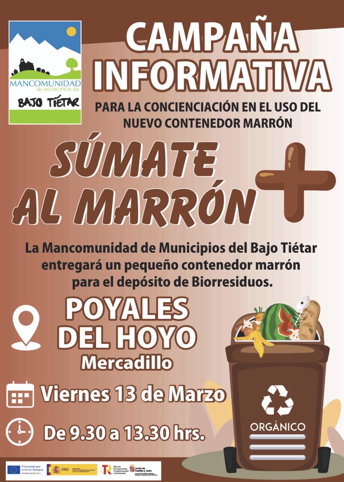 En el marco de la campaña de concienciación y sensibilización destinada a la implantación y correcta utilización del contenedor marrón dentro del Servicio de Recogida de Biorresiduos que la Mancomunidad de Municipios del Bajo Tiétar pondrá en funcionamiento el próximo 13 de abril de 2026, se procederá al reparto de un cubo para la recogida de materia orgánica a cada domicilio del municipio, con el objetivo de facilitar la correcta separación en(...)