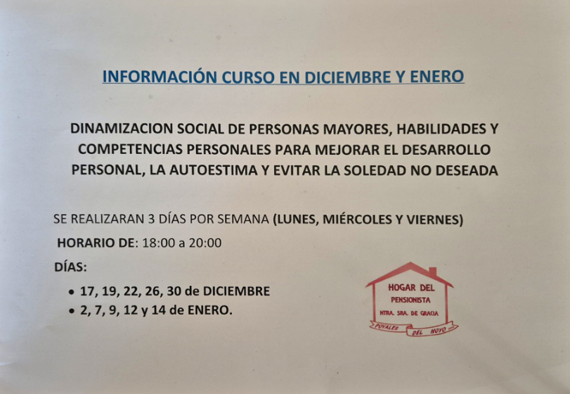 El curso se celebrará en el salón de abajo del Hogar del Pensionista y podrá asistir todo el que lo desee, incluidos los no socios.