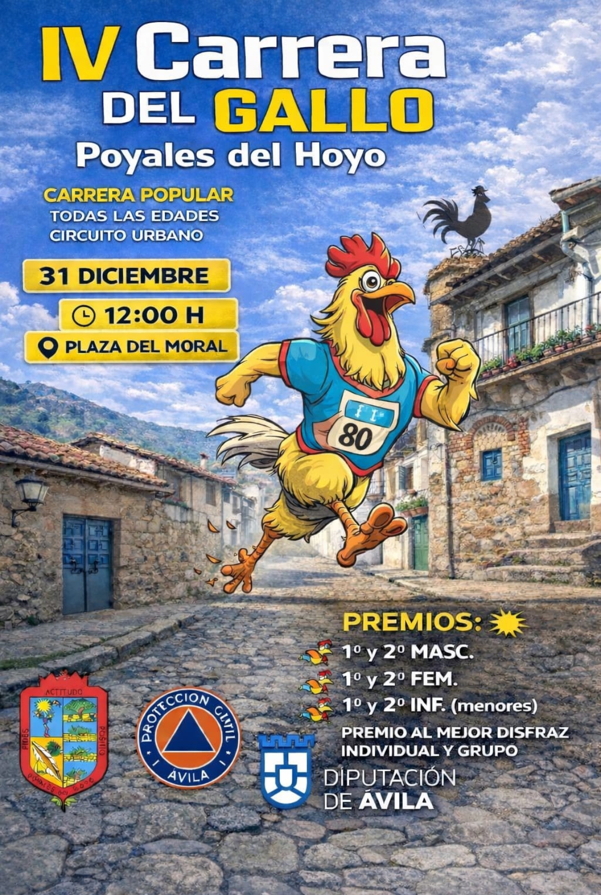 Poyales del Hoyo vuelve a despedir el año con su Carrera del Gallo, una carrera popular y muy nuestra, pensada para todas las edades y para disfrutar en familia, con amigos o con quien tú quieras.